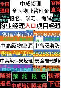 全国统一报名电话微信号131-4656-7934/15652681088,报名热线177-1006-7709中成培训梁老师,加微信报名立减学费100-200元团报价更优,中成培训工程师资格证物业管理证消防证保安证火热报名优惠中